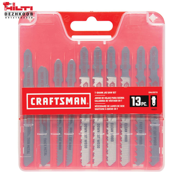 ست 13 عددی تیغ اره عمودبر CRAFTSMAN مدل CMAJ2SET13، یک مجموعه حرفهای و کارآمد برای انواع برشهای چوب و فلز است. این تیغهها با طراحی T-Shank (پایه T شکل) ساخته شدهاند و از فولاد کربن بالا (High Carbon Steel) تولید شدهاند که دوام و برش دقیق را تضمین میکند.