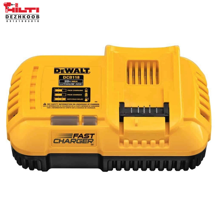اگر به دنبال یک شارژر حرفهای برای شارژ سریع و ایمن باتریهای لیتیومیون دیوالت هستید، شارژر مدل DCB118 بهترین انتخاب است. این شارژر با ورودی ۲۲۰ ولت (تبدیل شده برای استفاده در ایران) و پشتیبانی از جریان بالا، امکان شارژ باتریهای سری ۲۰ ولت MAX دیوالت را در کوتاهترین زمان فراهم میکند. وجود فن داخلی باعث خنکسازی بهتر باتری و افزایش طول عمر آن میشود.