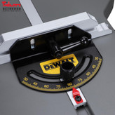 طراحی ویژهی میز اره دیوالت با فنس «رک و پینیون» (Rack & Pinion) باعث میشود تنظیم فنس کاملاً دقیق، سریع و بدون لغزش انجام شود. سیستم فنس تلسکوپی امکان افزایش ظرفیت برش تا بیش از ۸۲۵ میلیمتر را فراهم میکند که برای برش ورقهای بزرگ MDF یا نئوپان بسیار ایدهآل است.