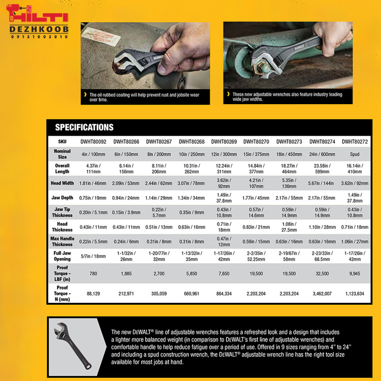 آچار فرانسه ۴ اینچ دیوالت مدل DWHT80092