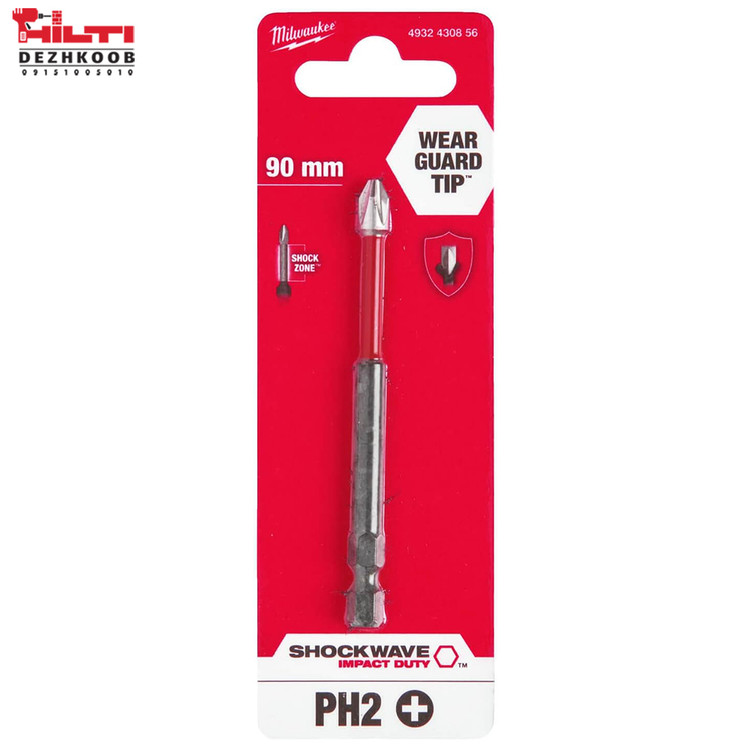 سر پیچگوشتی بیت چهارسو PH2 میلواکی مدل 4932430856 (۹ سانتیمتر)