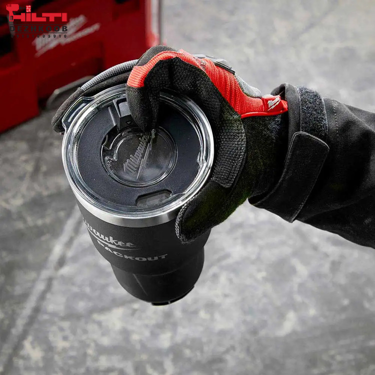درپوش آن مغناطیسی و لغزشی است که به راحتی باز و بسته میشود، حتی وقتی دستکش ضخیم دارید، و کمک میکند خاک و ذرات در محیط کار وارد تومبلر نشود.