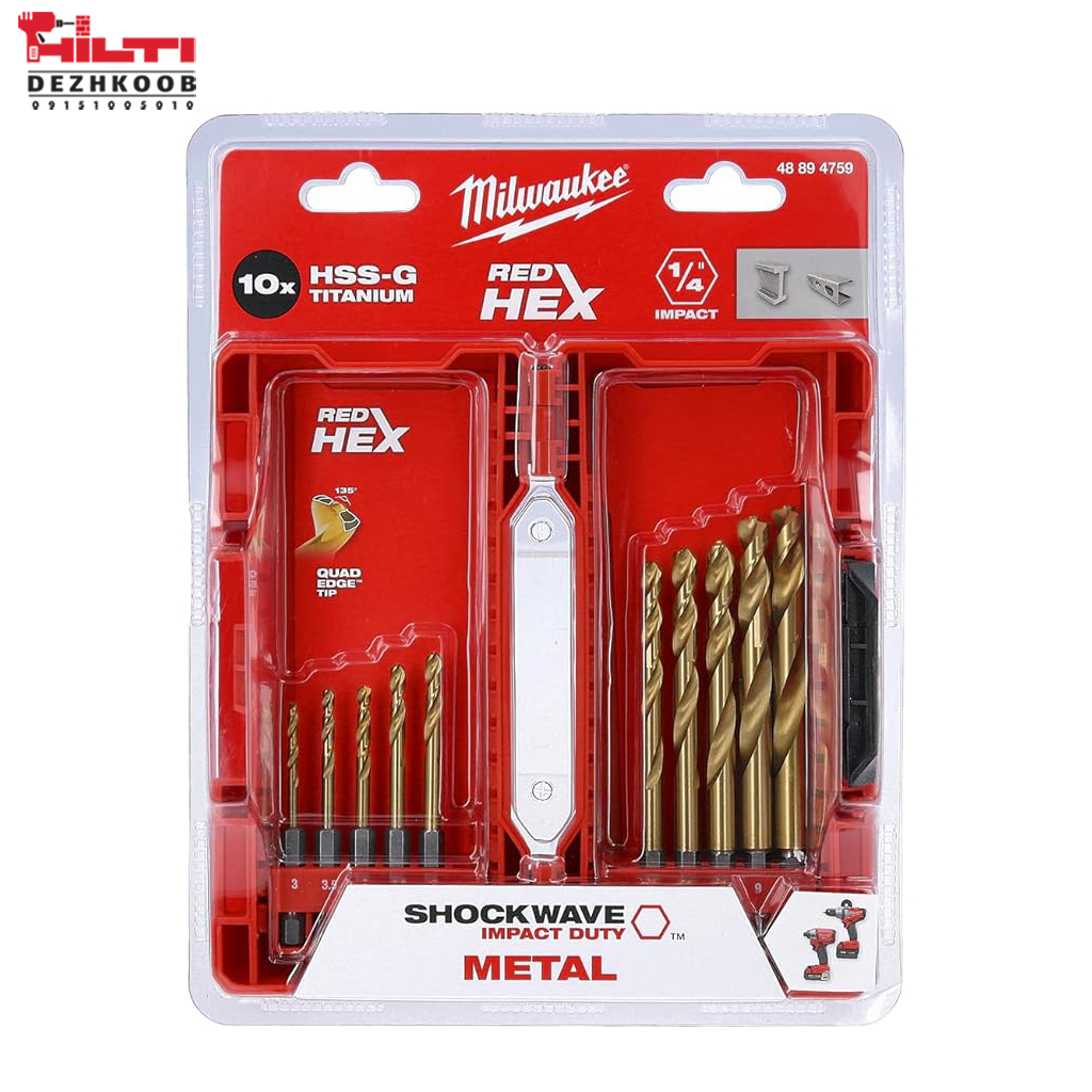 ست ۱۰ عددی مته ایمپکت خور میلواکی مدل 48894759 مجموعهای حرفهای از متههای فلز است که با روکش تیتانیوم HSS-G و طراحی نوک پیشرفته QUAD EDGE ساخته شدهاند. این متهها برای تحمل ضربات مداوم در ابزارهای Impact Driver طراحی شدهاند و در عین حال دقت حفاری بسیار بالایی ارائه میدهند.