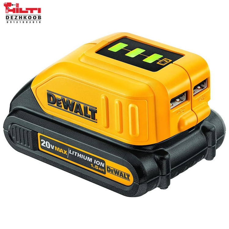 آداپتور DCB090 دیوالت ابزاری حرفهای برای تبدیل باتریهای شارژی دیوالت به یک پاوربانک قابل حمل است. این وسیله امکان شارژ دستگاههای الکترونیکی مانند گوشی، تبلت، چراغ LED و ابزارهای کوچک را بدون نیاز به برق مستقیم فراهم میکند.