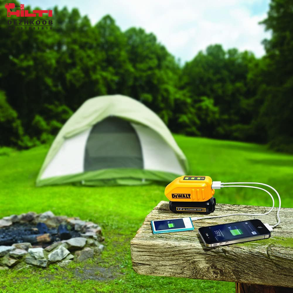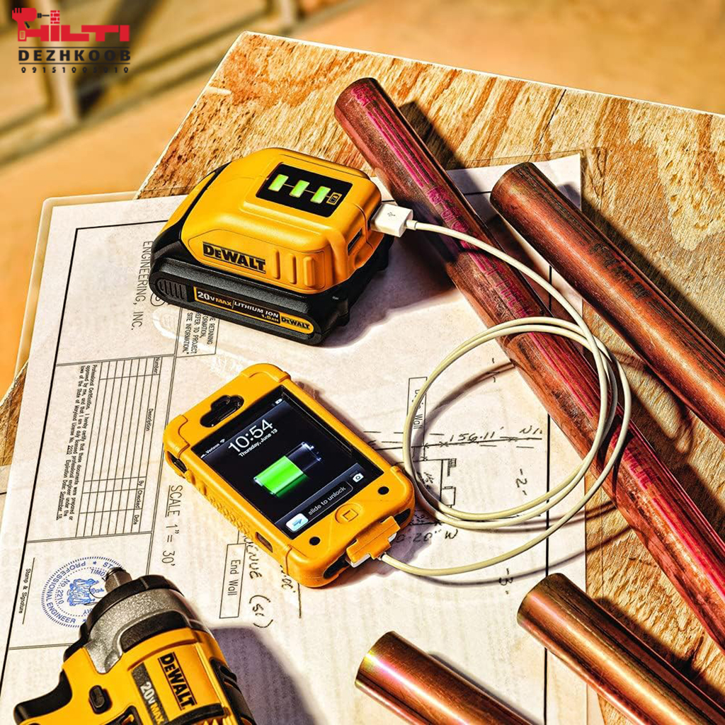 آداپتور DCB090 دیوالت ابزاری حرفهای برای تبدیل باتریهای شارژی دیوالت به یک پاوربانک قابل حمل است. این وسیله امکان شارژ دستگاههای الکترونیکی مانند گوشی، تبلت، چراغ LED و ابزارهای کوچک را بدون نیاز به برق مستقیم فراهم میکند.