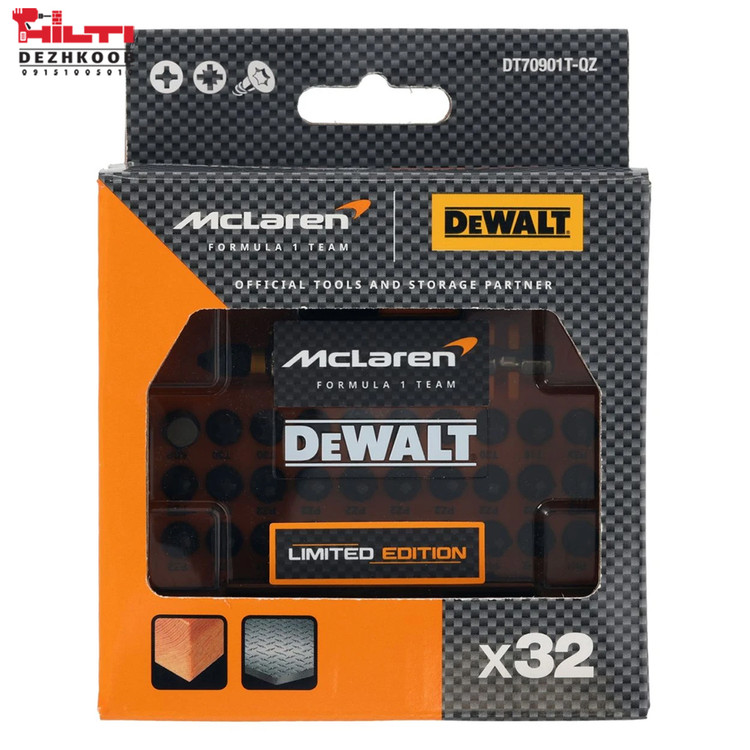ست ۳۲ عددی بیت سرپیچگوشتی DEWALT McLaren DT70901T-QZ حاصل همکاری دو برند نمادین در دنیای حرفهایهاست؛ دیوالت، نامی که سالهاست مترادف با دوام صنعتی و اعتماد بیچونوچراست، و مکلارن، اسطورهی سرعت، ظرافت مهندسی و عملکرد بینقص. نتیجهی این همکاری، مجموعهای خاص برای کسانی است که ابزار را صرفاً وسیلهی کار نمیبینند، بلکه آن را بخشی از هویت حرفهای خود میدانند.