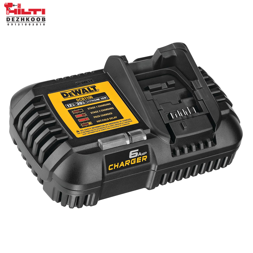 اگر به دنبال یک شارژر حرفهای برای شارژ سریع و ایمن باتریهای لیتیومیون دیوالت هستید، شارژر مدل DCB1106 بهترین انتخاب است. این شارژر با ورودی ۲۲۰ ولت (تبدیل شده برای استفاده در ایران) و پشتیبانی از جریان بالا، امکان شارژ باتریهای سری ۲۰ ولت MAX دیوالت را در کوتاهترین زمان فراهم میکند. وجود فن داخلی باعث خنکسازی بهتر باتری و افزایش طول عمر آن میشود.