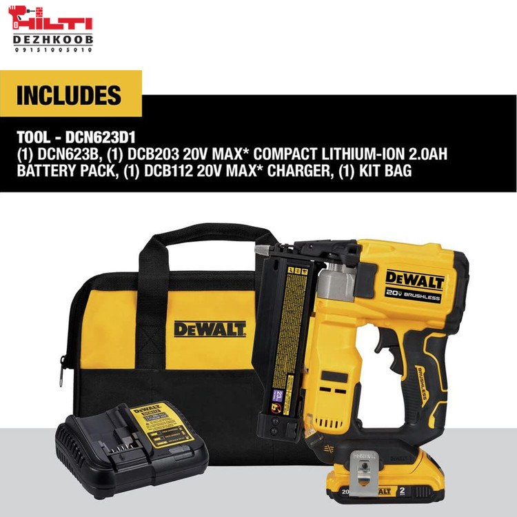 DeWALT DCN623D1 نسخهای کامل و آماده بهکار از میخکوب شارژی 20V MAX است که با باتری، شارژر و کیف حمل عرضه میشود و میتواند با هر بار شارژ حدود 2,000 میخ را شلیک کند. طراحی براشلس برای دقت، دوام و کارایی بهینه بهکار رفته و این ابزار را برای پروژههای ضروری نجاری، کابینتسازی و نصب داخلی به انتخابی حرفهای تبدیل میکند.