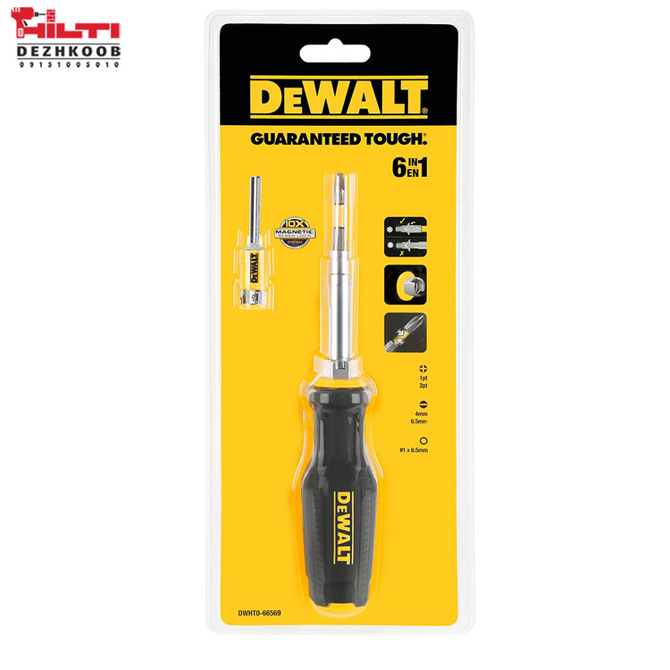 پیچگوشتی دیوالت مدل DWHT0‑66569 یک ابزار چندکاره ۶ در ۱ از برند معتبر DeWALT است که برای کارهای عمومی، تعمیرات، نصب و نگهداری در منزل، کارگاه و پروژههای حرفهای طراحی شده است. این پیچگوشتی با طراحی چندنوک قابل تعویض و سیستم مغناطیسی نگهدارنده پیچ امکان استفاده سریع و مطمئن از سریهای مختلف را فراهم میکند، بدون نیاز به ابزار اضافی برای تعویض سریها.