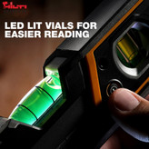 لامپهای LED: با لامپهای LED تعبیه شده در داخل، خواندن سطح تراز در شرایط نوری ضعیف به آسانی امکانپذیر است و بعد از گذشت 3 دقیقه به صورت خوئکار خاموش میشود.