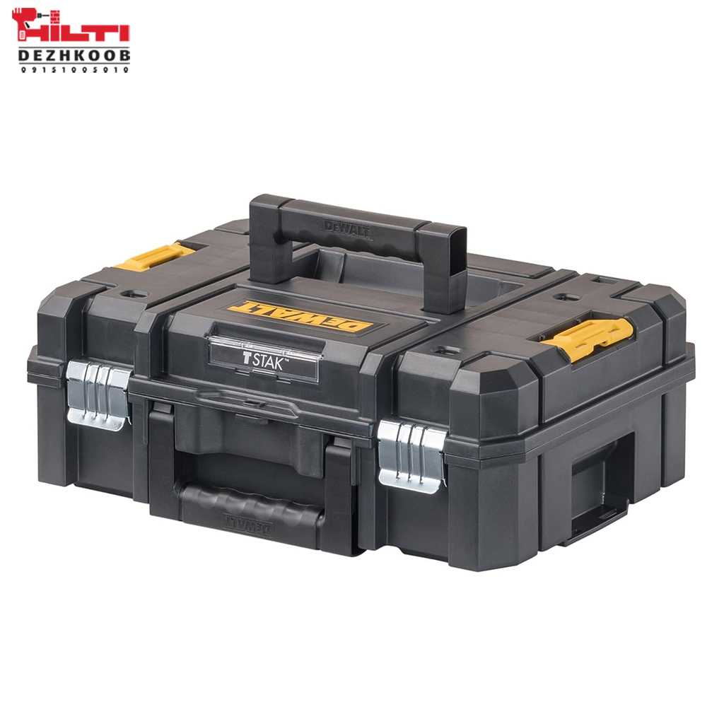 جعبه این دریل شارژی دیوالت TSTAK و از نوع دو دسته میباشد که ارتفاع بیشتری نسبت به مدل تک دسته دارد و قابلیت قرار دادن یک دریل و ایمپکت را در کنار هم با پارتیشن های مخصوص داخل جعبه وجود دارد.