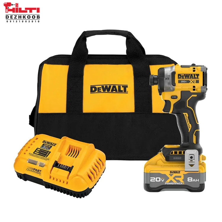1 عدد ایمپکت شارژی-1عدد باتری 8 آمپر نسل جدید-1عدد شارژر سوپر فست 8 آمپر-1 عدد کیف برزنتی- 1 عدد غلاف کمری